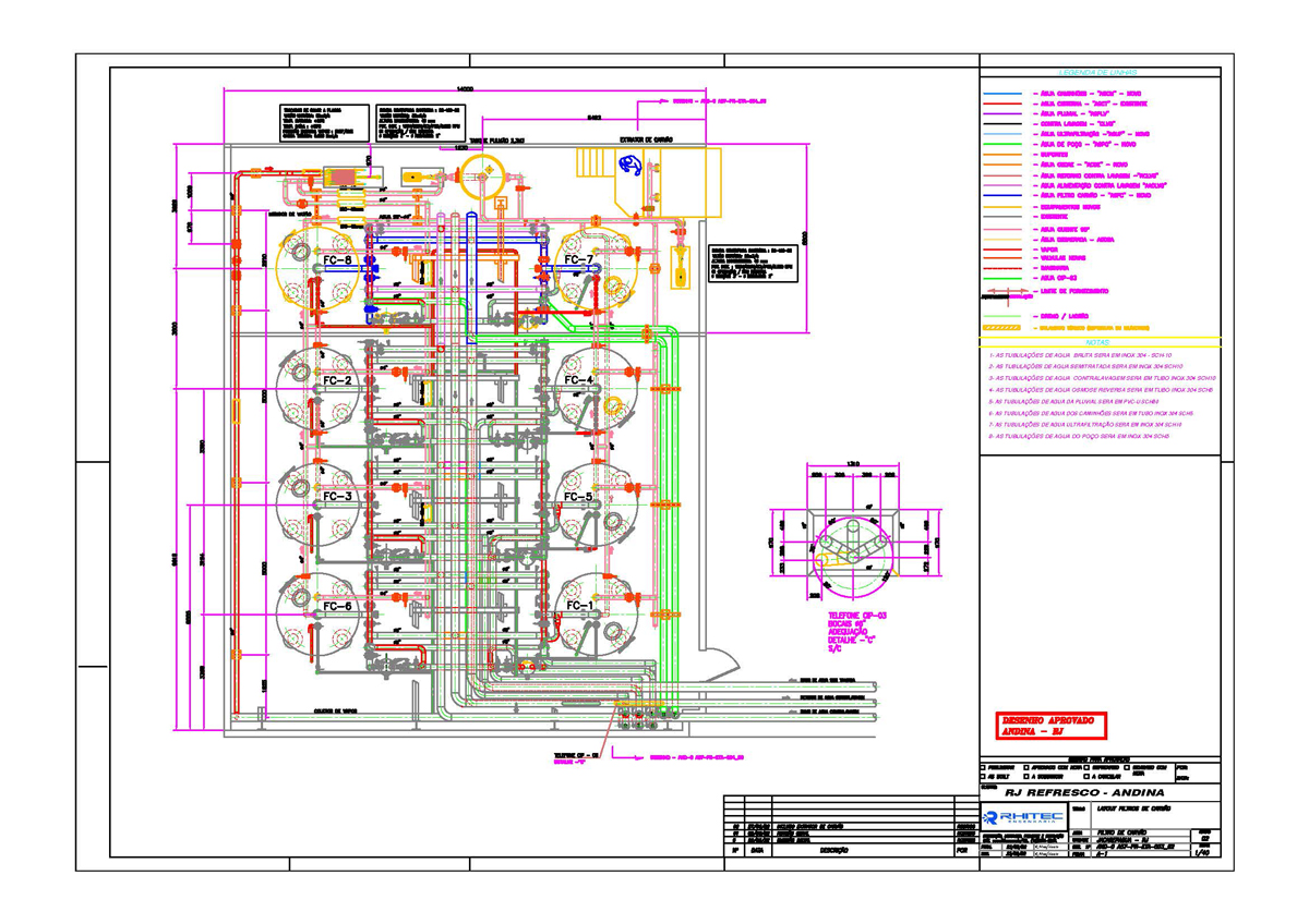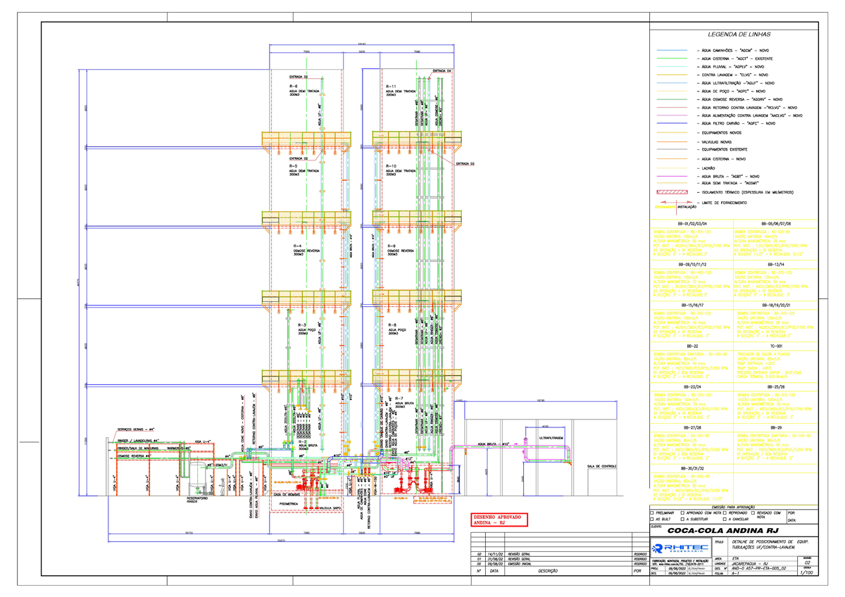 Sistemas de Água Industrial: Desenvolvemos projetos para sistemas de tratamento de água, bombeamento, armazenamento e distribuição, assegurando a qualidade da água conforme a aplicação exigida.